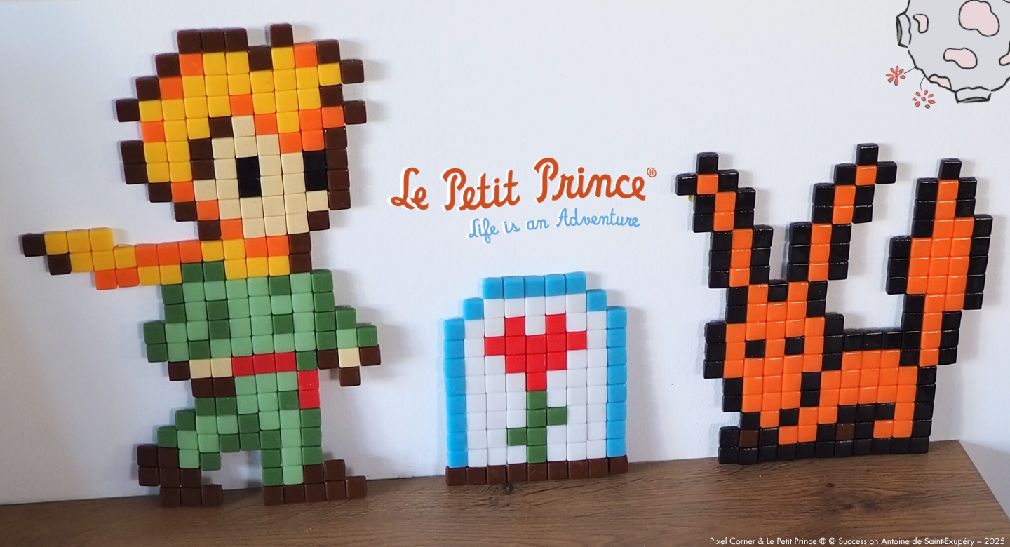 Sous les étoiles, entre les planètes et les rêves, Le Petit Prince renaît sous forme de mosaïques pixel art à assembler soi-même. Fruit d’une collaboration entre Le Petit Prince® et Pixel Corner, cette collection exclusive réinvente les symboles de l’œuvre d’Antoine de Saint-Exupéry en petits carreaux colorés : le voyageur stellaire, le renard apprivoisé, la rose sous cloche et bien sûr, l’étoile guide.
