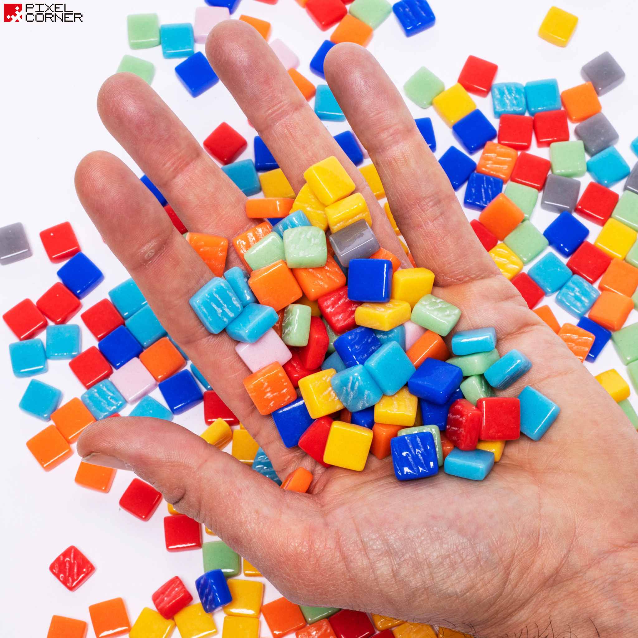 On conçoit et on prépare des kits de mosaïque pixel art. Chaque kit contient :